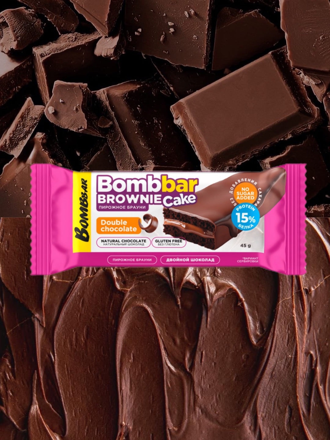 Протеиновый брауни BOMBBAR - Двойной шоколад 45г