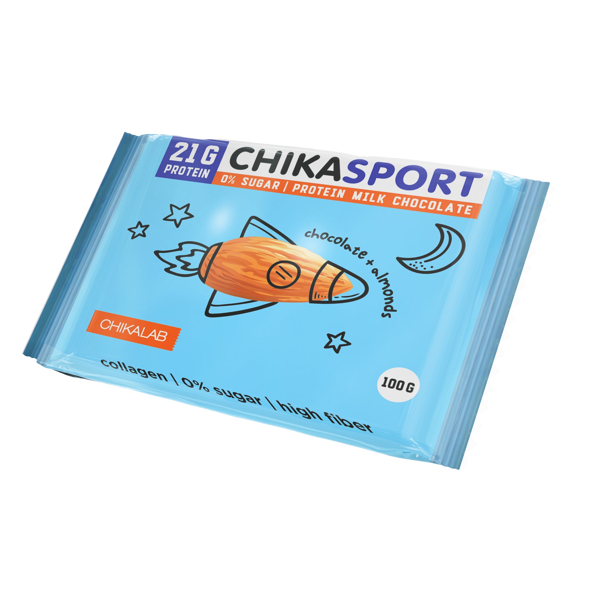молочный шоколад (олигофруктоза (пищевые волокна), какао масло, молоко сухое цельное, концентрат сывороточного белка, какао тертое, инулин (пищевые волокна), гидролизат коллагена, эмульгатор (соевый лецитин), ароматизаторы натуральные, подсластитель (сукралоза)), миндаль. Молочный шоколад содержит общий сухой остаток какао не менее 33%, сухой обезжиреный остаток какао не менее 5%, сухой молочный остаток не менее 26%, молочный жир не менее 4%.